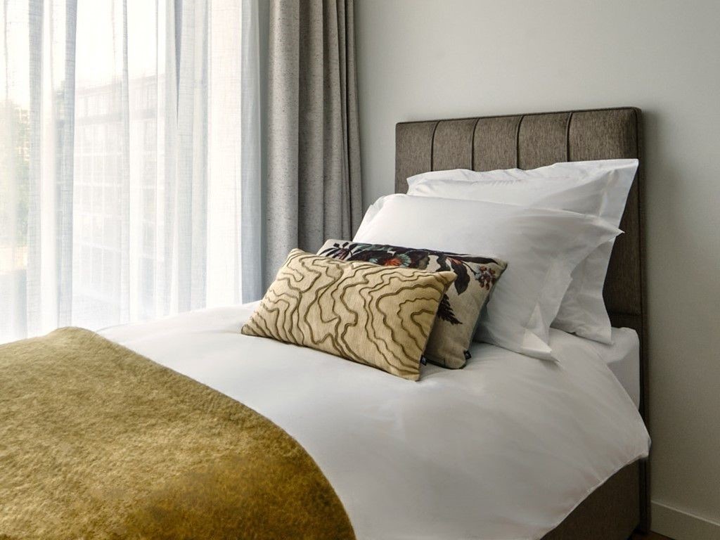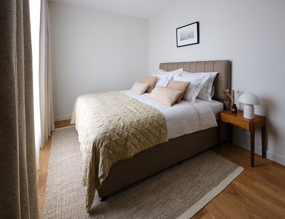 The two comfortable bathrooms are equipped with walk-in shower and wide sink, one bathroom has a bathtub. All black bathroom taps are from the brand Dornbracht, tile design and tiles from Mosa. The luxury open kitchen by SieMatic with island is fully equipped, including a Quooker faucet. The appliances are by Siemens and include a fridge-freezer, dishwasher, combination oven and recirculation stove. The worktop is composite. The three spacious bedrooms feature large windows for plenty of incoming natural light. The built-in curtain coves allow installation of all types of window coverings: from blackout and dark to light voile, for those who want to wake up naturally.