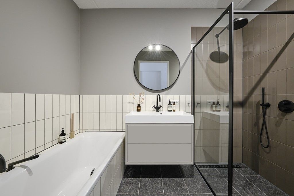 De twee comfortabele badkamers zijn voorzien van inloopdouche en brede wastafel, één badkamer is voorzien van ligbad. Alle zwarte badkamerkranen zijn van het merk Dornbracht, tegelontwerp en tegels van Mosa. De luxe open keuken van SieMatic met kookeiland is van alle gemakken voorzien, waaronder een Quooker-kraan. De apparatuur is van Siemens en bestaat uit een koelvriescombinatie, vaatwasser, combi-oven en recirculatie-fornuis. Het werkblad is van composiet. De drie ruime slaapkamers zijn voorzien van grote ramen voor veel binnenstromend daglicht. De ingebouwde gordijnkoven maken montage van alle typen raambekleding mogelijk: van verduisterend en donker tot lichte voile, voor wie natuurlijk wil ontwaken.