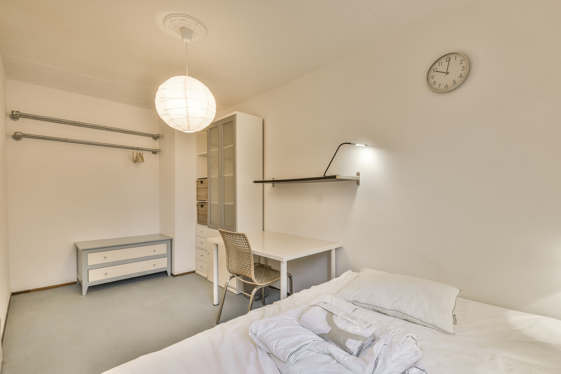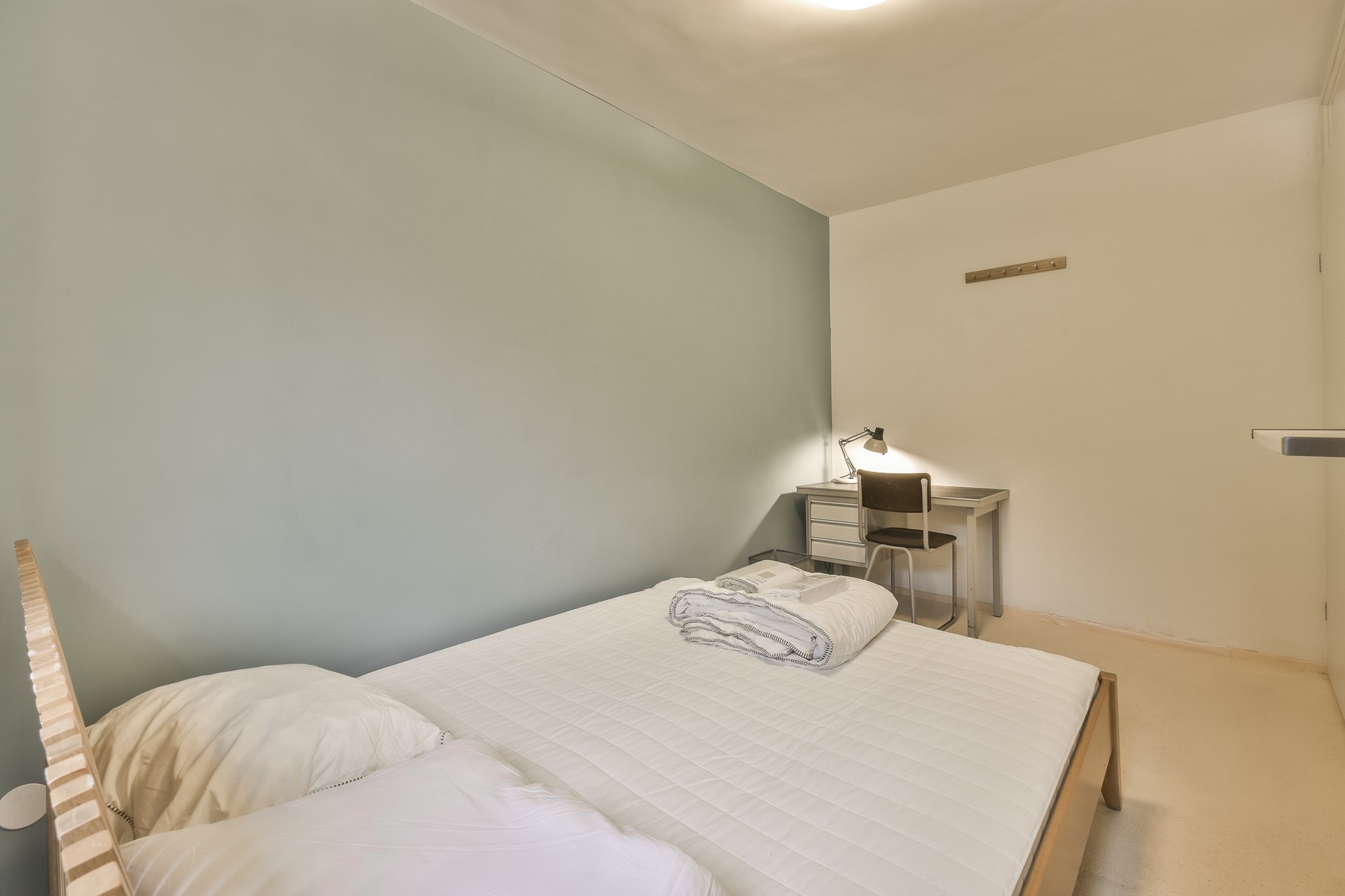 Entrance on the ground floor. From the hallway, access to two bedrooms at the front, both furnished with a bed and wardrobe.