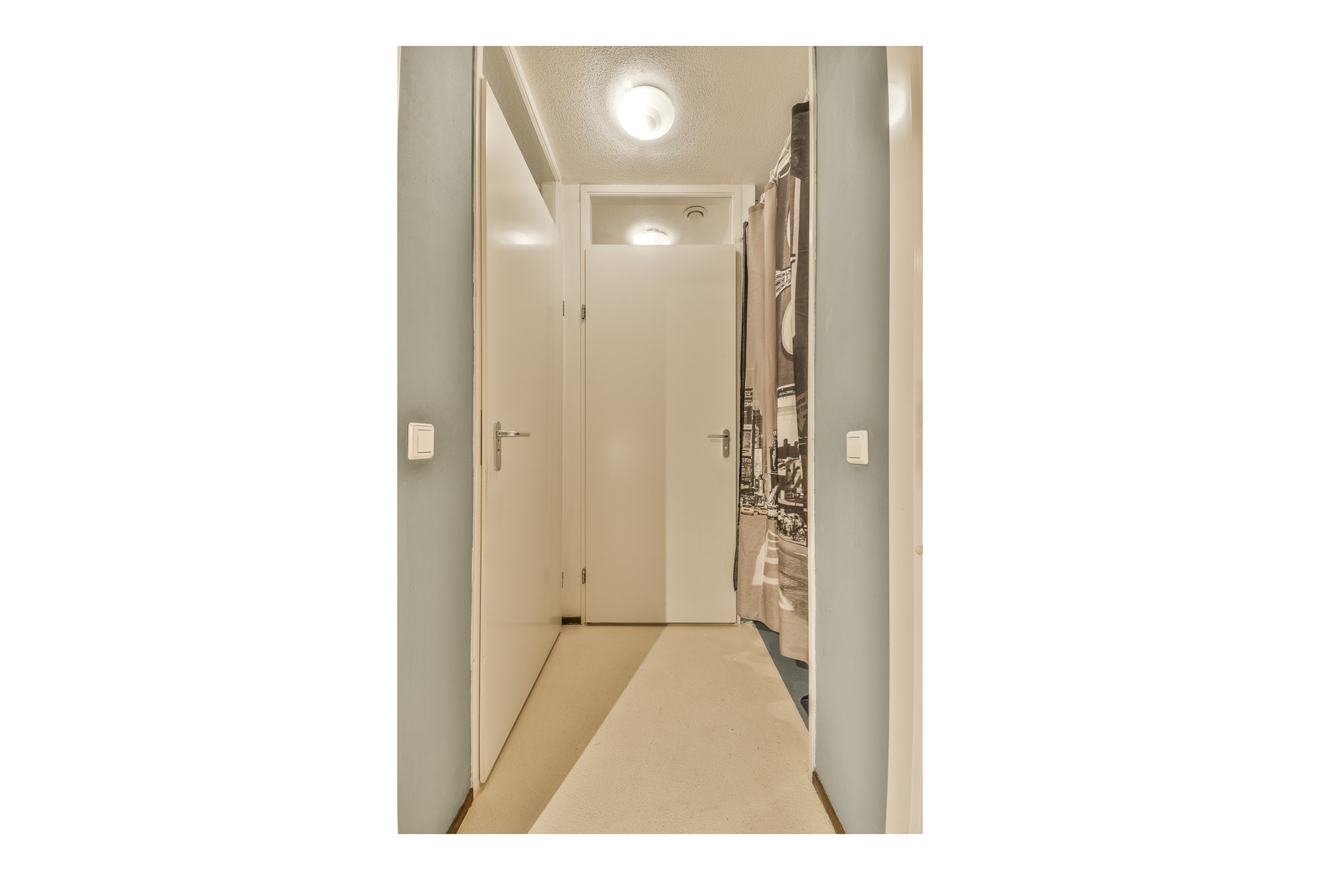 Entree op de begane grond. Vanuit de hal toegang tot twee slaapkamers aan de voorzijde, beide ingericht met een bed en kledingkast.